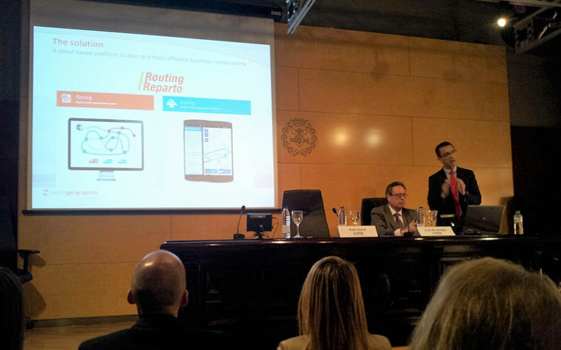 RoutingReparto és una aplicació cloud per planificar i optimitzar les rutes de l’empresa, visitar més clients i disminuir costos. El conductor té una APP amb la seva ruta i les visites geolocalitzades. A l’oficina disposen d’una aplicació online per planificar noves rutes i monitoritzar-les en temps real. Es tracta d’una solució completa per organitzar les rutes, assequible per tot tipus d’empresa i amb una quota mensual per vehicle. Nexus Geographics és una empresa especialitzada en tecnologia de geolocalització, transport, tràfic i mobilitat urbana.